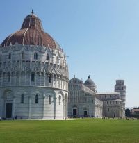Piazza del Dumo mit dem Dom Santa Maria Assunta und seinem Capaniie (Schiefer Turm von Pisa), Baptisterium und Friedhof Camposanto Monumentale ist seit 1967 UNESCO Welterbe.